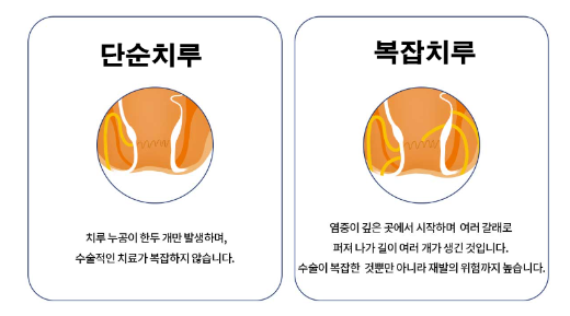 증상이 생긴지 2개월 이상이거나 상처의 기저부에 괄약근이 노출될 정도로 상처가 큰 경우입니다.